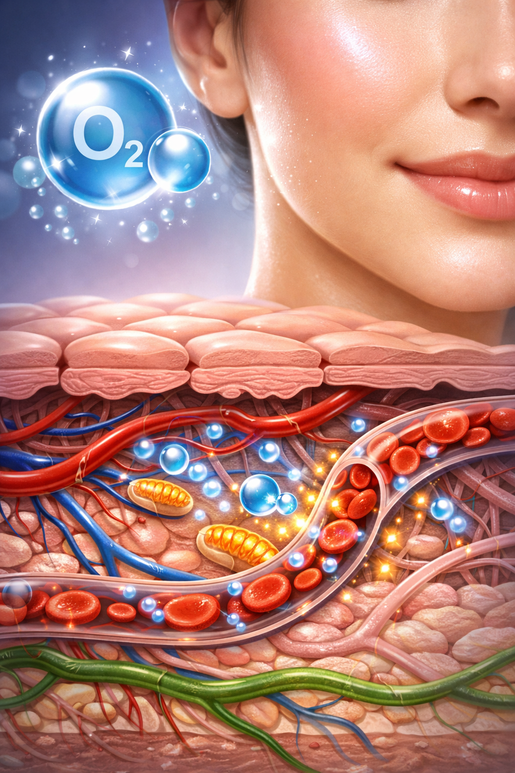 2. Oxy hóa mô & vi tuần hoàn: Nền tảng sinh lý của làn da căng bóng