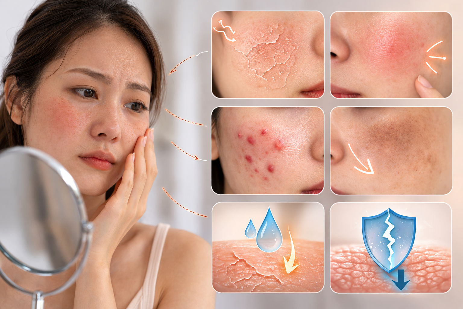 Những dấu hiệu này cho thấy nền da đang ở trạng thái chưa ổn định và cần được phục hồi trước khi tiếp nhận các can thiệp điều trị.