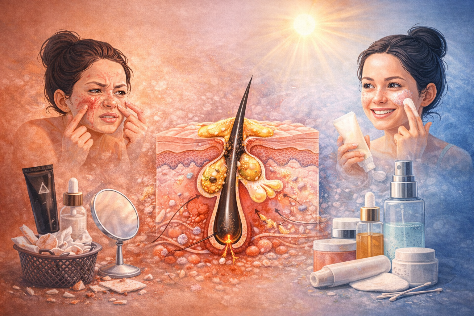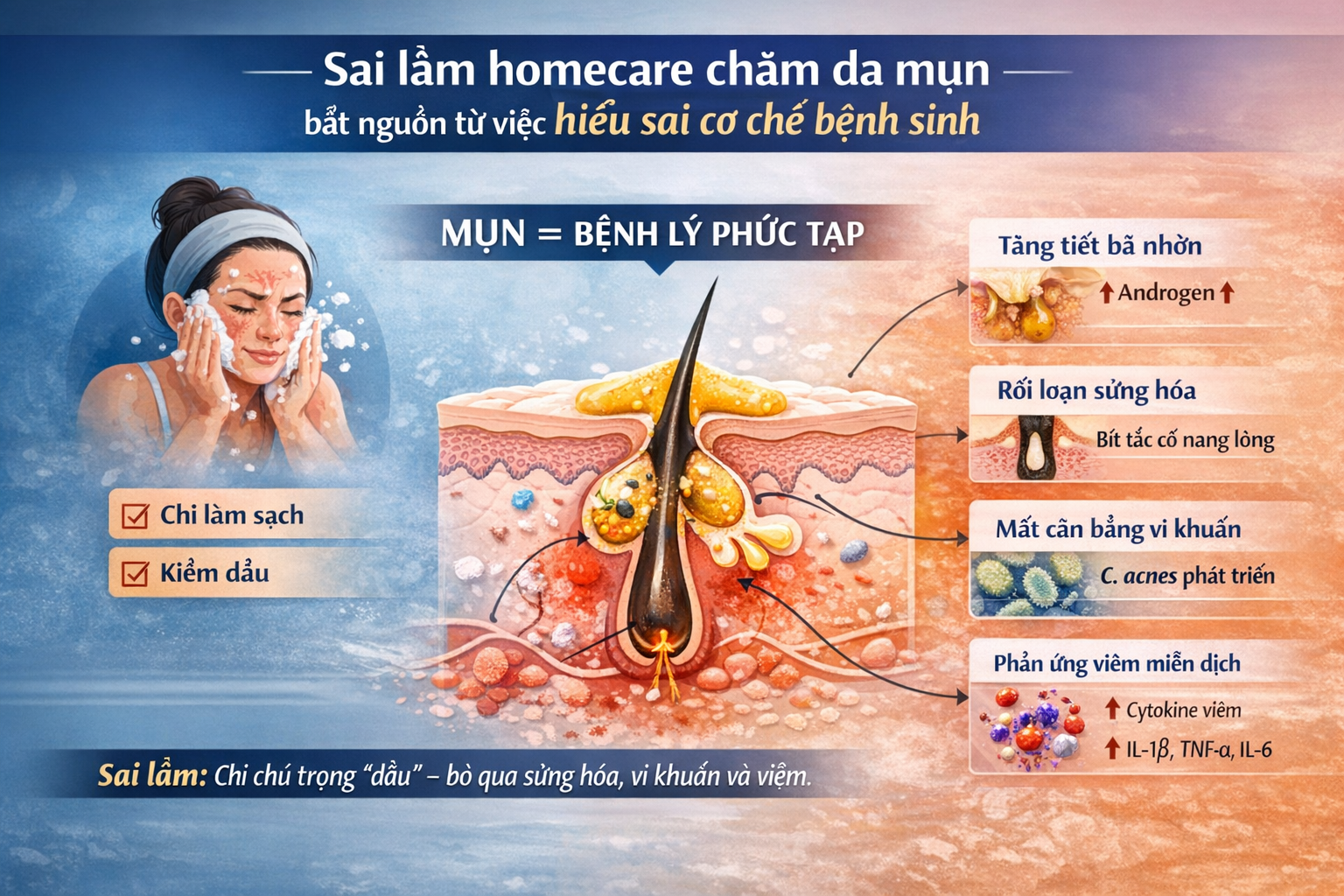 Sai lầm homecare chăm da mụn dưới góc nhìn cơ chế sinh học da liễu