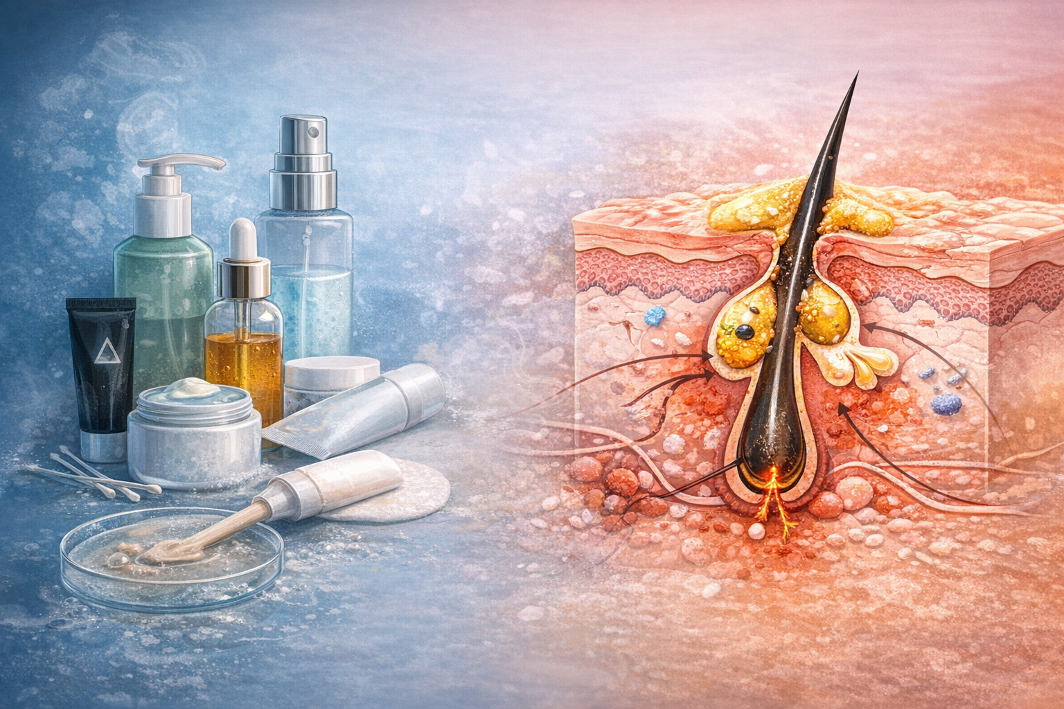Các hoạt chất như AHA, BHA hay retinoids đều có vai trò quan trọng trong chăm sóc da mụn, đặc biệt trong việc điều hòa sừng hóa và làm sạch nang lông. Tuy nhiên, khi sử dụng không kiểm soát, chúng có thể phá vỡ cấu trúc liên kết giữa các tế bào sừng, làm tăng tính thấm của da và tạo điều kiện cho các yếu tố gây viêm xâm nhập.